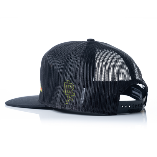 Richardson 168 7 Panel Trucker Cap with Rasta Logo- Black/ Black
