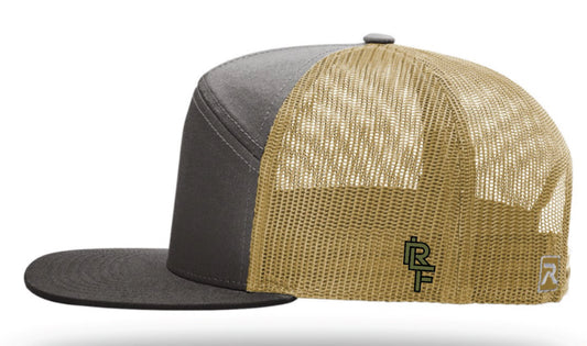 Richardson 168 7 Panel Trucker Cap with Rasta Logo- Charcoal/ Old Gold